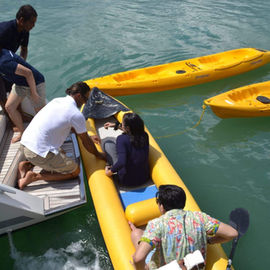 A large covered aft deck, adjacent to the salon, has an alfresco dining option allowing generous seating. On her two transoms OO SEVEN offer an extremely easy access to the water activities or Scuba Diving . Side decks lead to a generous foredeck with dual trampolines and a guest cockpit.